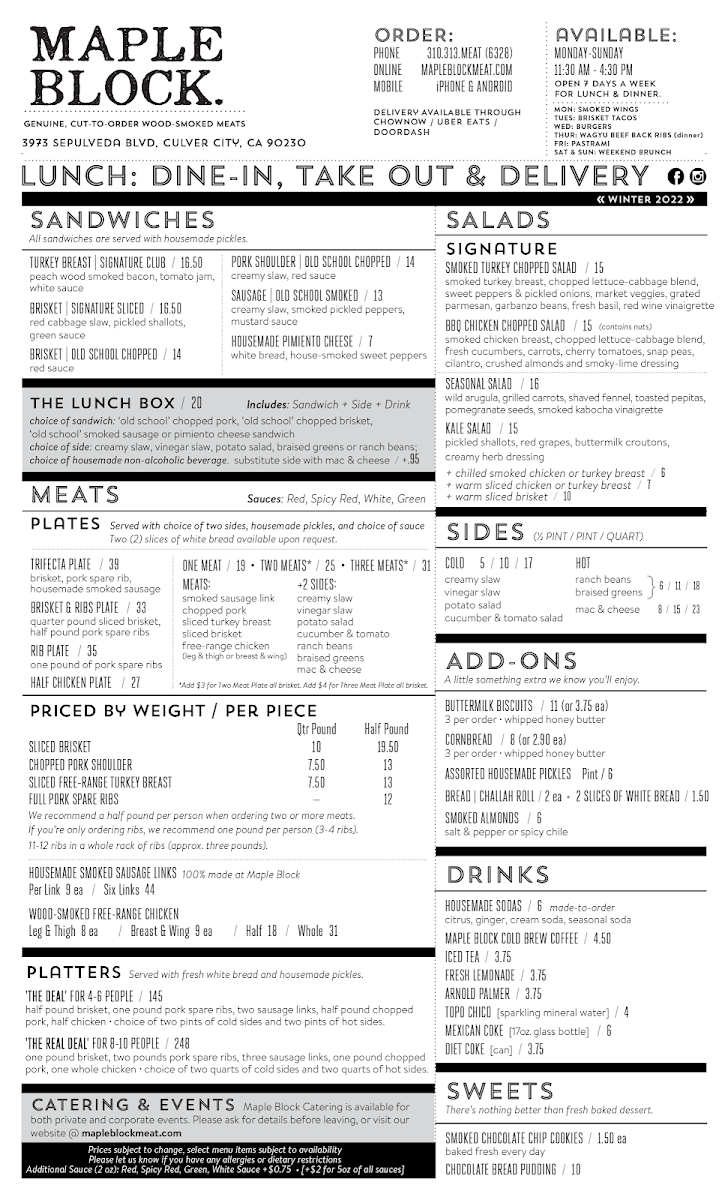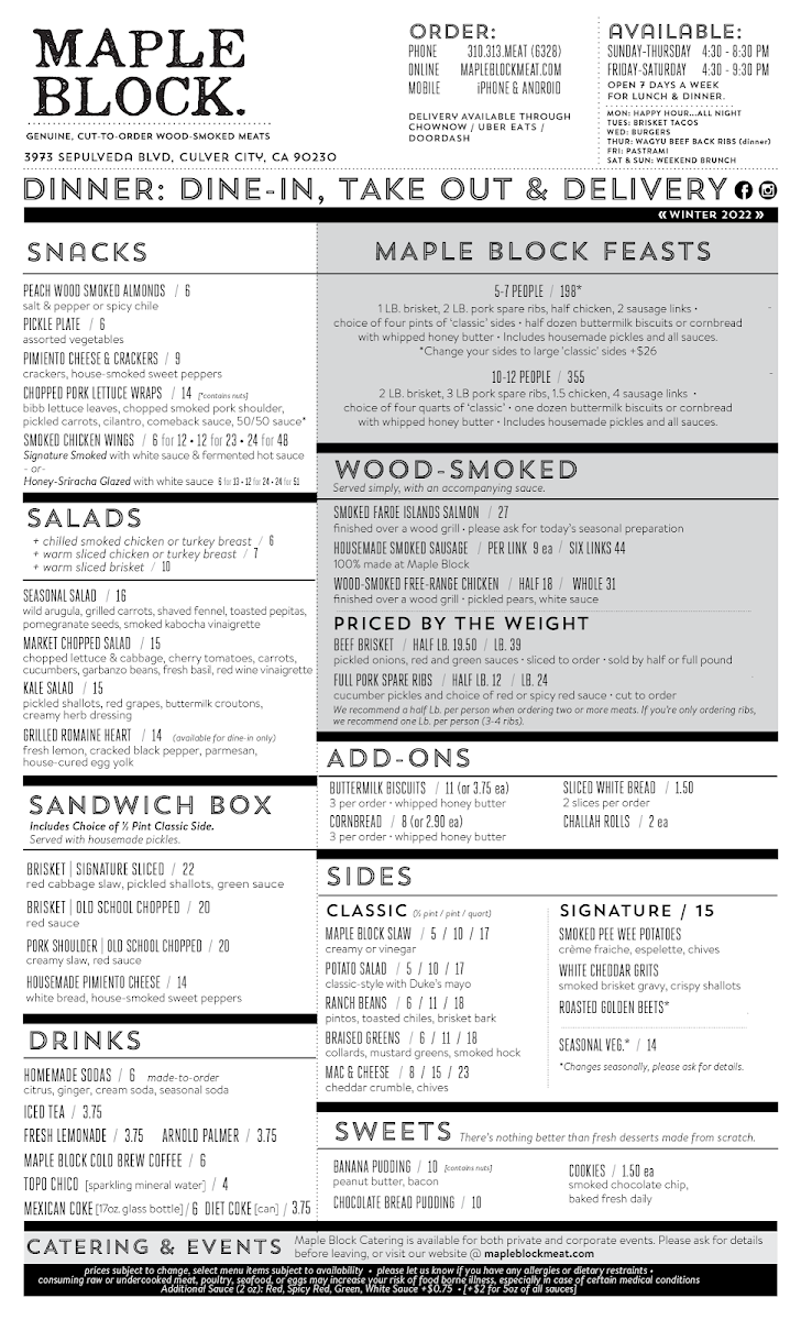 Welcome to Maple Block Meat Co., a barbecue treasure nestled in Culver City, California. This popular establishment at 3973 Sepulveda Blvd brings the essence of authentic barbecue right to the heart of Los Angeles. Not just a place to eat, but an experience that tantalizes your taste buds and warms your heart.