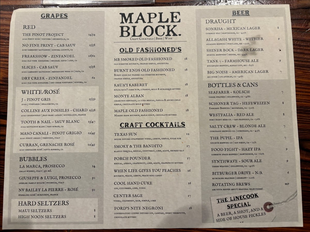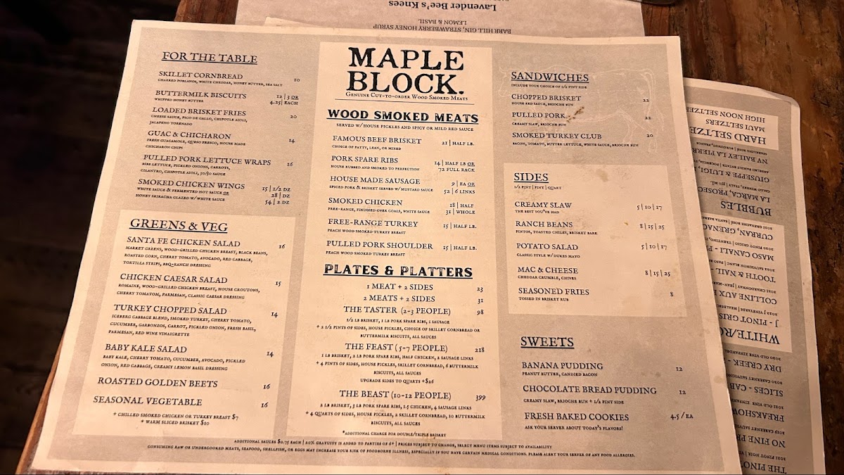 If you find yourself with a craving, Maple Block offers a delightful selection of add-ons to enhance your meal, such as their skillet cornbread with charred poblanos and honey butter—a true crowd favorite. For the adventurous drinkers, the unique twist of the Burnt Ends Old Fashioned could be just what your palate needs after a hearty plate of ribs or pulled pork.